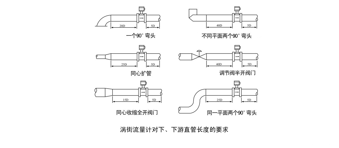 正常測量流速范圍:雷諾數1.5×104~4×106;氣體5~50m/s; 液體0.5~7m/s