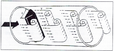 在氣體流體中設置三角柱型旋渦發生體,則從旋渦發生體兩側交替地產生有規則的旋渦,這種旋渦稱為卡門旋渦,如右圖所示,旋渦列在旋渦發生體下游非對稱地排列。