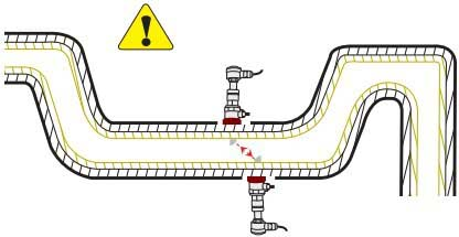 3、避免安裝在管道系統(tǒng)的最高點或帶有自由出口的豎直管道上(流體向下流動)