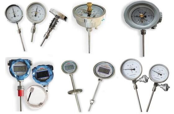 雙金屬溫度計是一種測量中低溫度的現場檢測儀表,是基于繞制成環性彎曲的雙金屬片組成,其中一端固定,另一端受熱便可帶動指針旋轉,標度盤上便可指出所測量的介質溫度。一般雙金屬溫度計被用于低溫就地測量指示溫度,而熱電阻與熱電偶被用于中低溫或者中高溫測量并輸出信號進入控制系統監控。