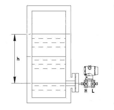 1)變送器安裝在開(kāi)口容器低端法蘭水平線(xiàn)以下,如下圖: