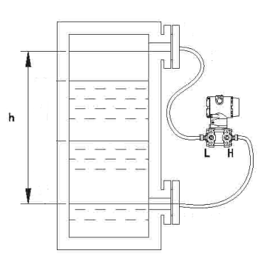 2)變送器安裝在密閉容器低端法蘭水平線(xiàn)以上